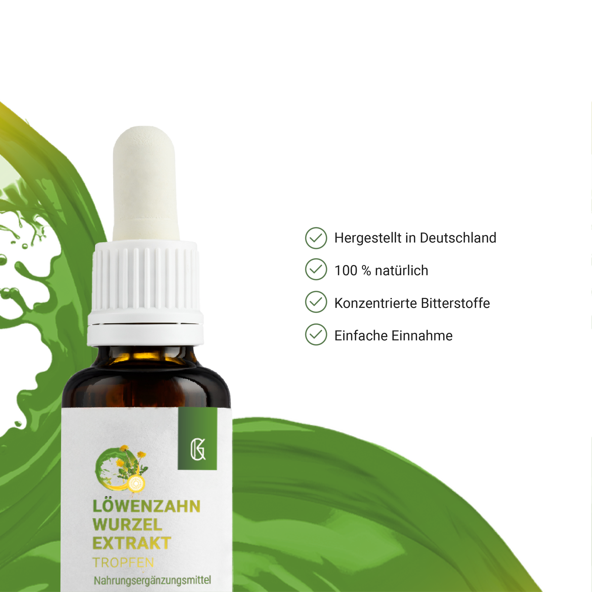 Löwenzahnwurzelextrakt wird traditionell eingesetzt zur: -Unterstützung der Leber- und Gallentätigkeit - Förderung der Verdauung und Entgiftung - Unterstützung eines klaren Hautbildes - Natürlichen Anregung des Stoffwechsels