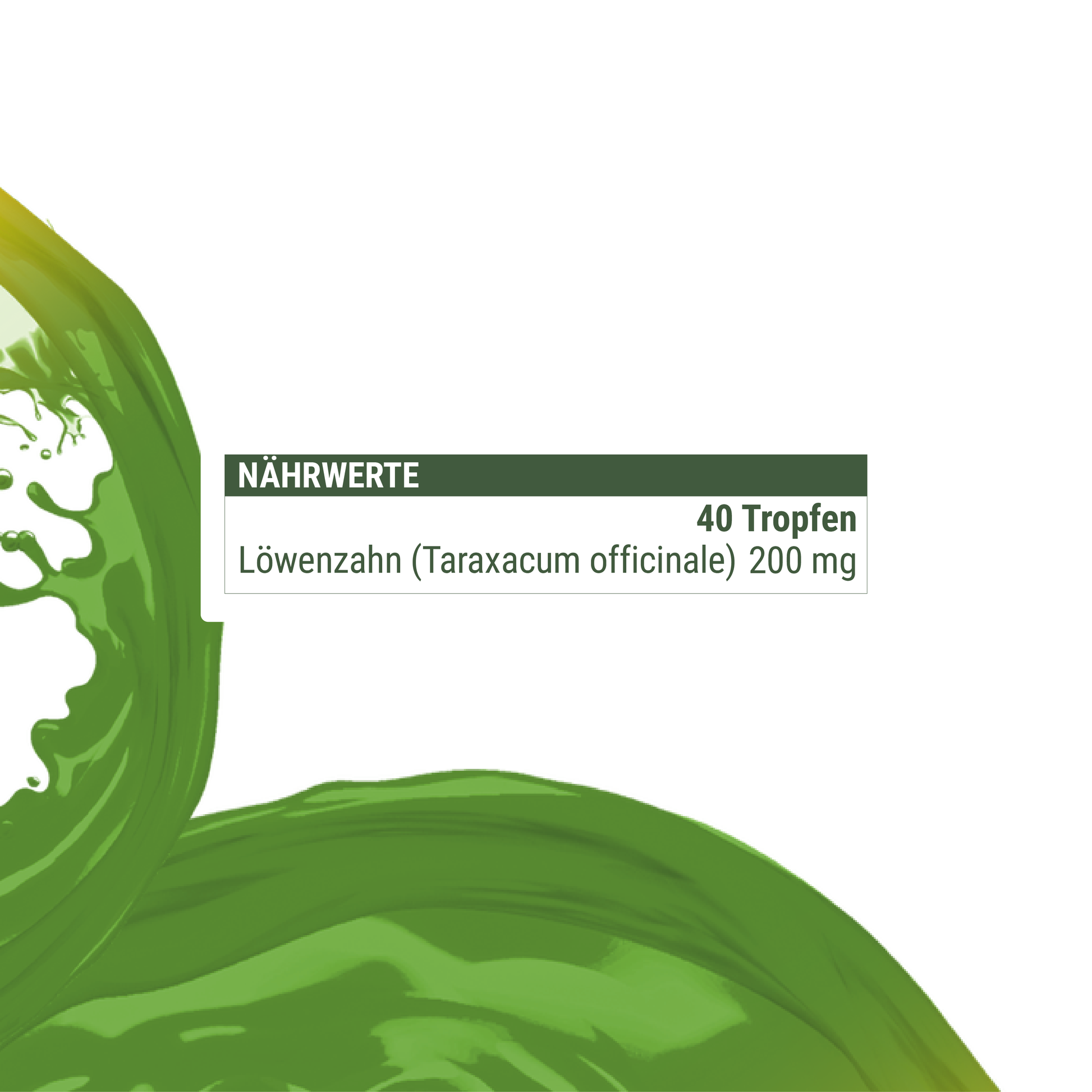 Die empfohlene Tagesdosis beträgt 40 Tropfen, was etwa 200 mg Löwenzahnwurzelextrakt entspricht. Die Tropfen können pur, in Wasser oder in einem Saft eingenommen werden – am besten vor den Mahlzeiten.
